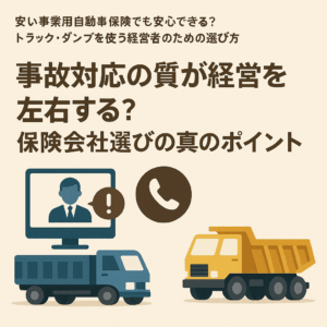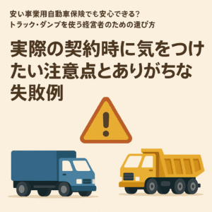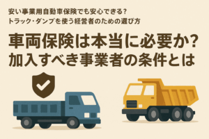 本記事では、事業用車両(トラック・ダンプ・軽貨物など)を対象に、保険料の抑え方から、補償内容の最適化、特約の活用法、保険会社の選び方、経費処理の方法までを網羅的に解説しました。