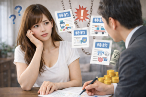 避けたいのは、「女性疾病特約」や「通院特約」を過剰に重ねること。
