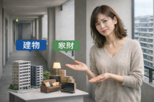 「建物」、「家財」の2つの補償対象が存在します。